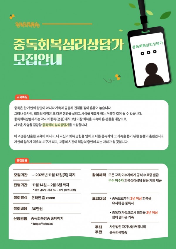 ‘중독회복상담가 양성과정’을 모집합니다.